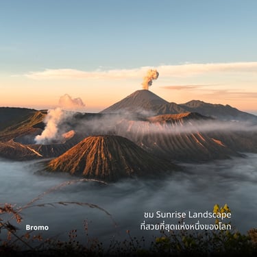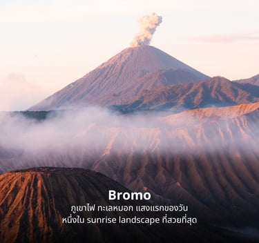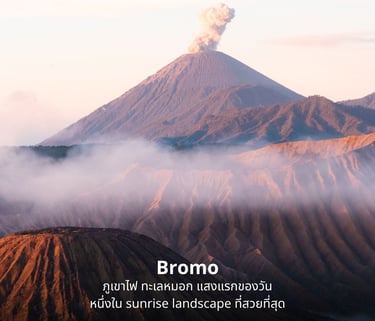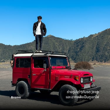 Day 2 : ไปชมพระอาทิตย์ขึ้นเหนืออุทยาน Bromo Tengger Semeru - ถ่ายรูปกับรถ Jeep และภูเขาไฟ - เดินขึ้นปากปล่องภูเขาไฟ Bromo - เดินทางไปโรงแรมใกล้น้ำตก Tumpuk Sewu